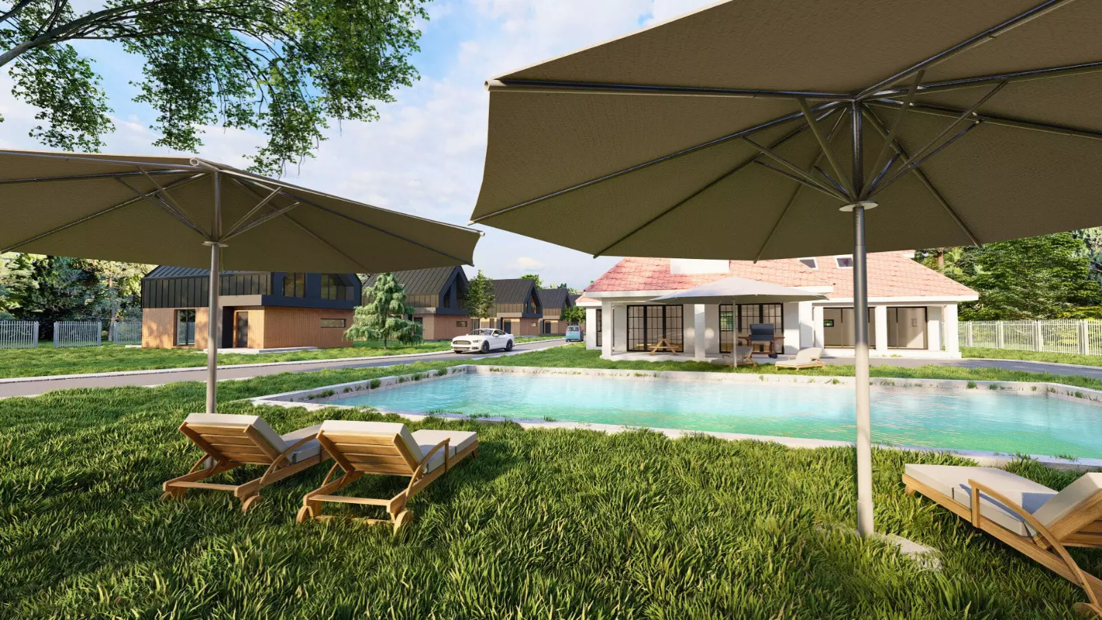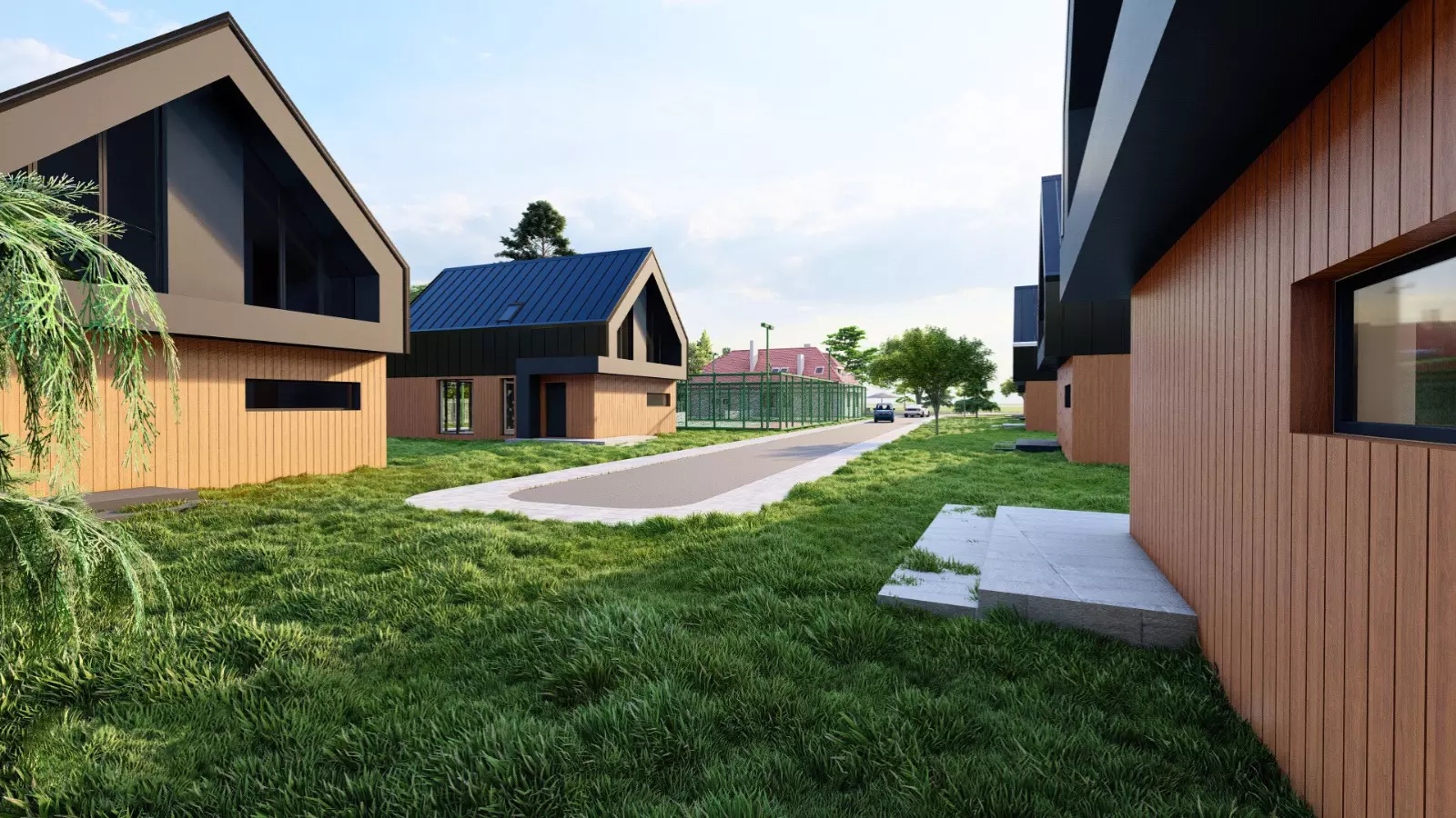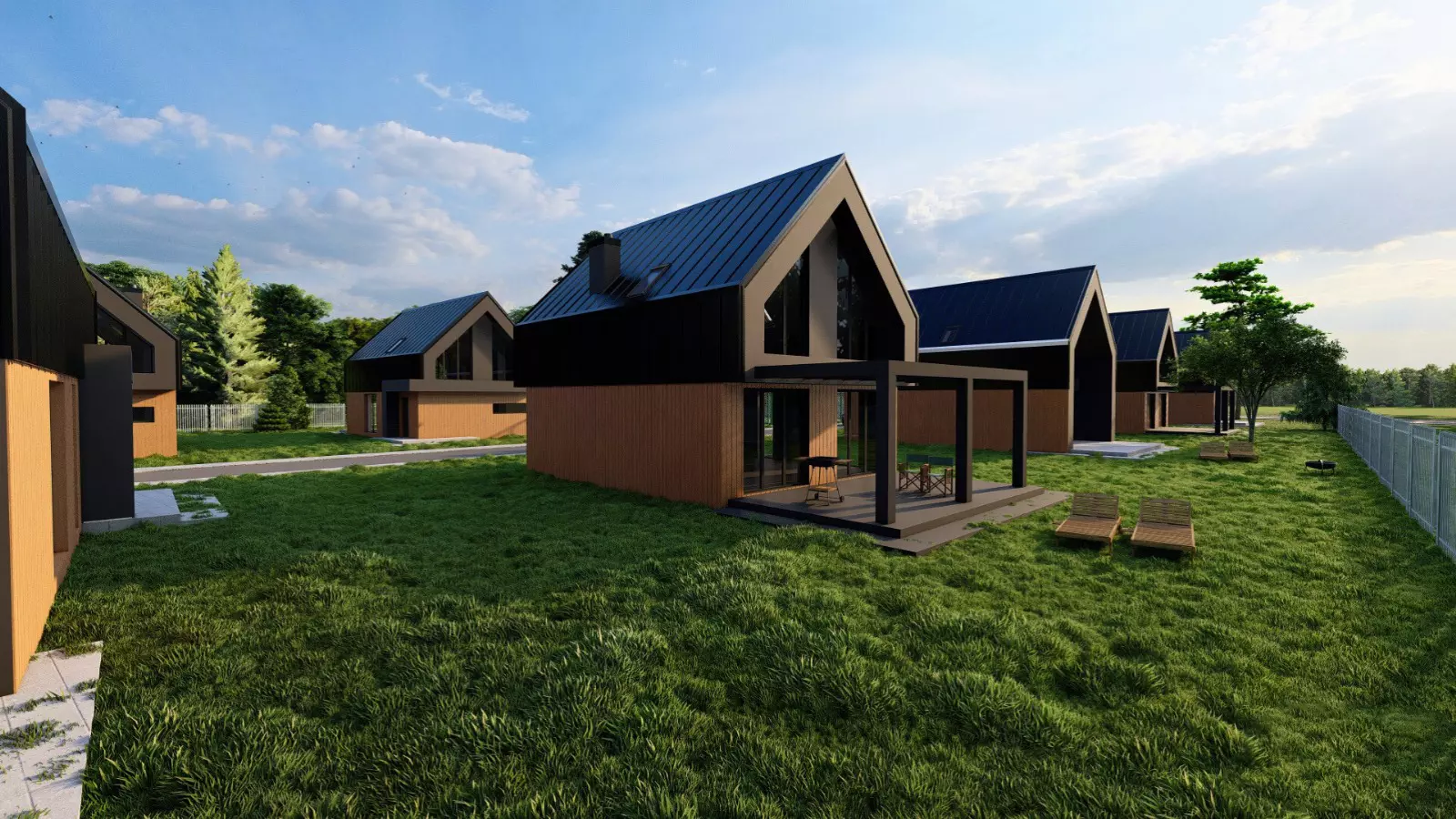 Projekt harmonijnie wpisuje się w otaczający krajobraz – bujna zieleń, otwarte przestrzenie i kojące widoki na wodę budują atmosferę sprzyjającą codziennemu wyciszeniu i komfortowi życia. Nowoczesna architektura została zaprojektowana tak, aby podkreślać naturalne walory terenu, a nie z nimi konkurować, tworząc spójną i elegancką całość.