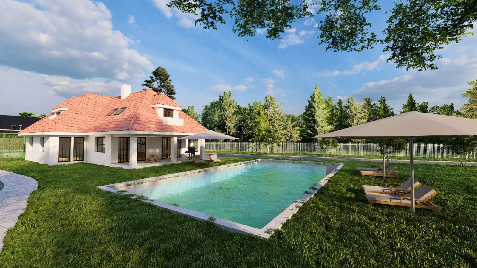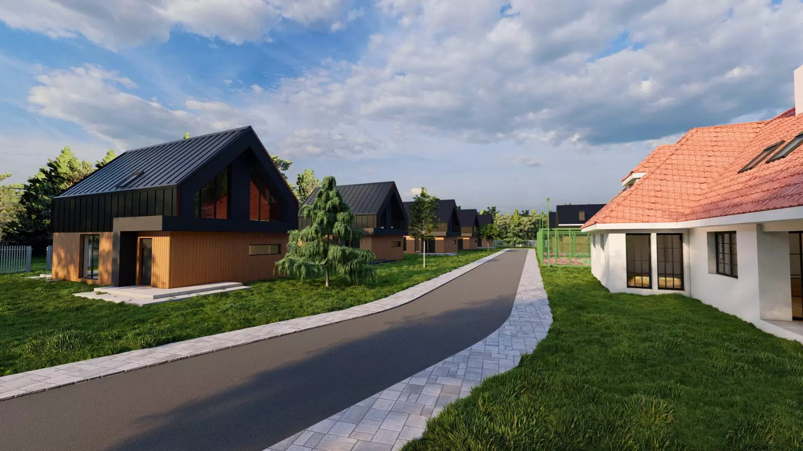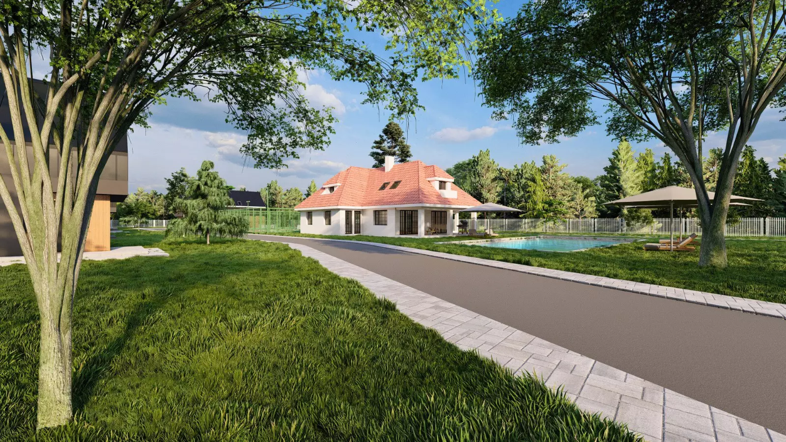 Projekt harmonijnie wpisuje się w otaczający krajobraz – bujna zieleń, otwarte przestrzenie i kojące widoki na wodę budują atmosferę sprzyjającą codziennemu wyciszeniu i komfortowi życia. Nowoczesna architektura została zaprojektowana tak, aby podkreślać naturalne walory terenu, a nie z nimi konkurować, tworząc spójną i elegancką całość.