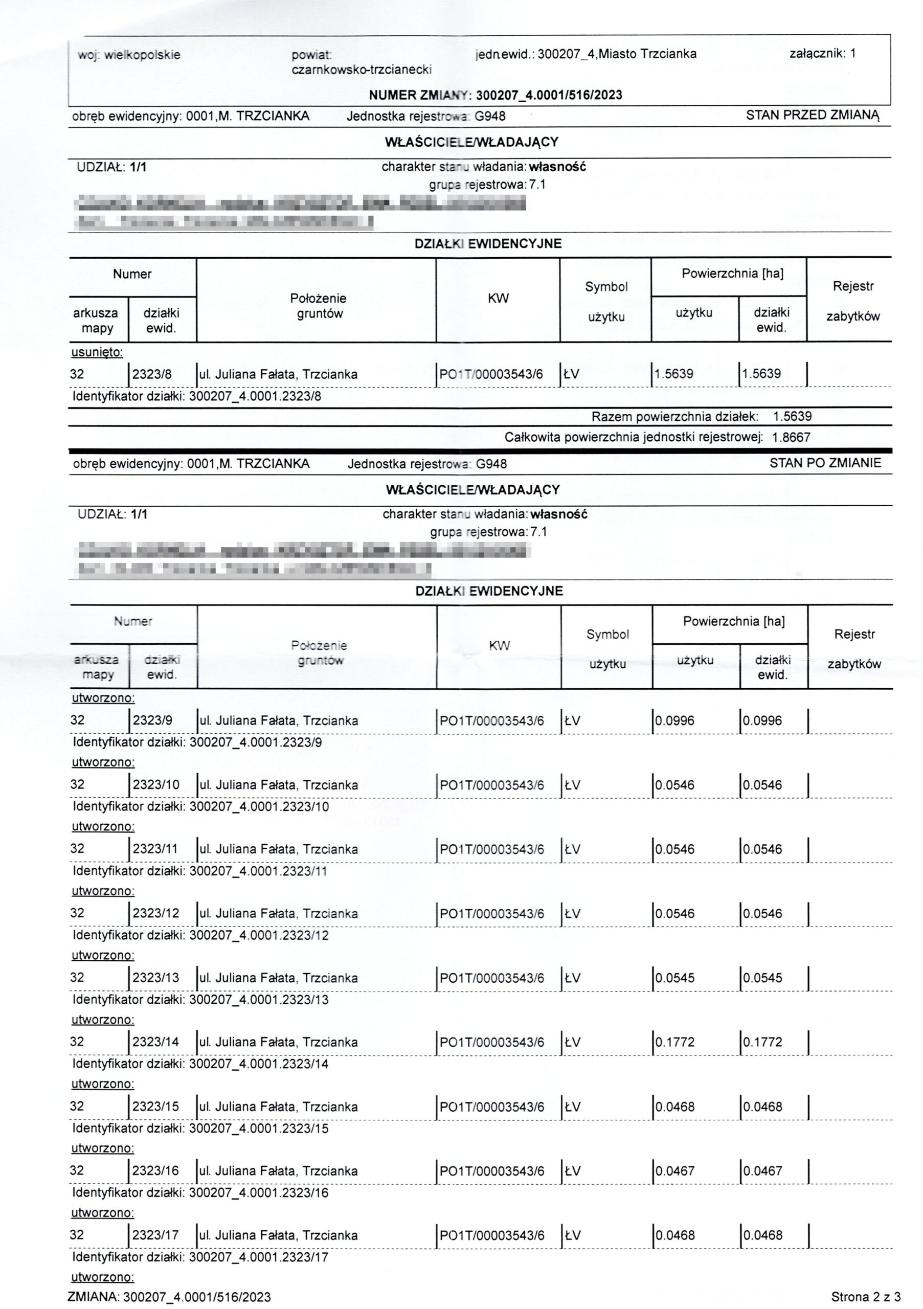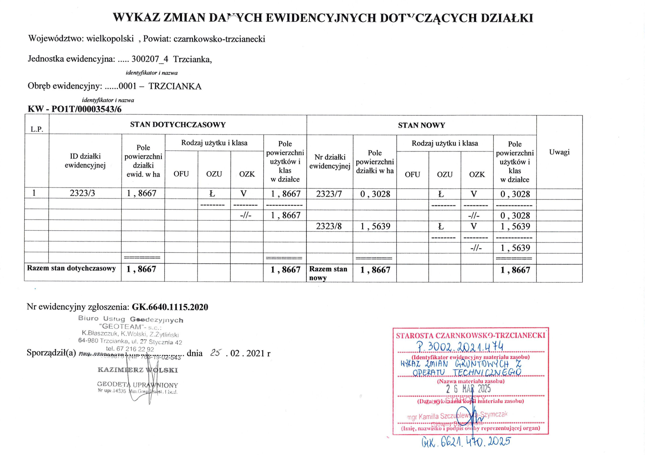 Wykaz zmian danych ewidencyjnych