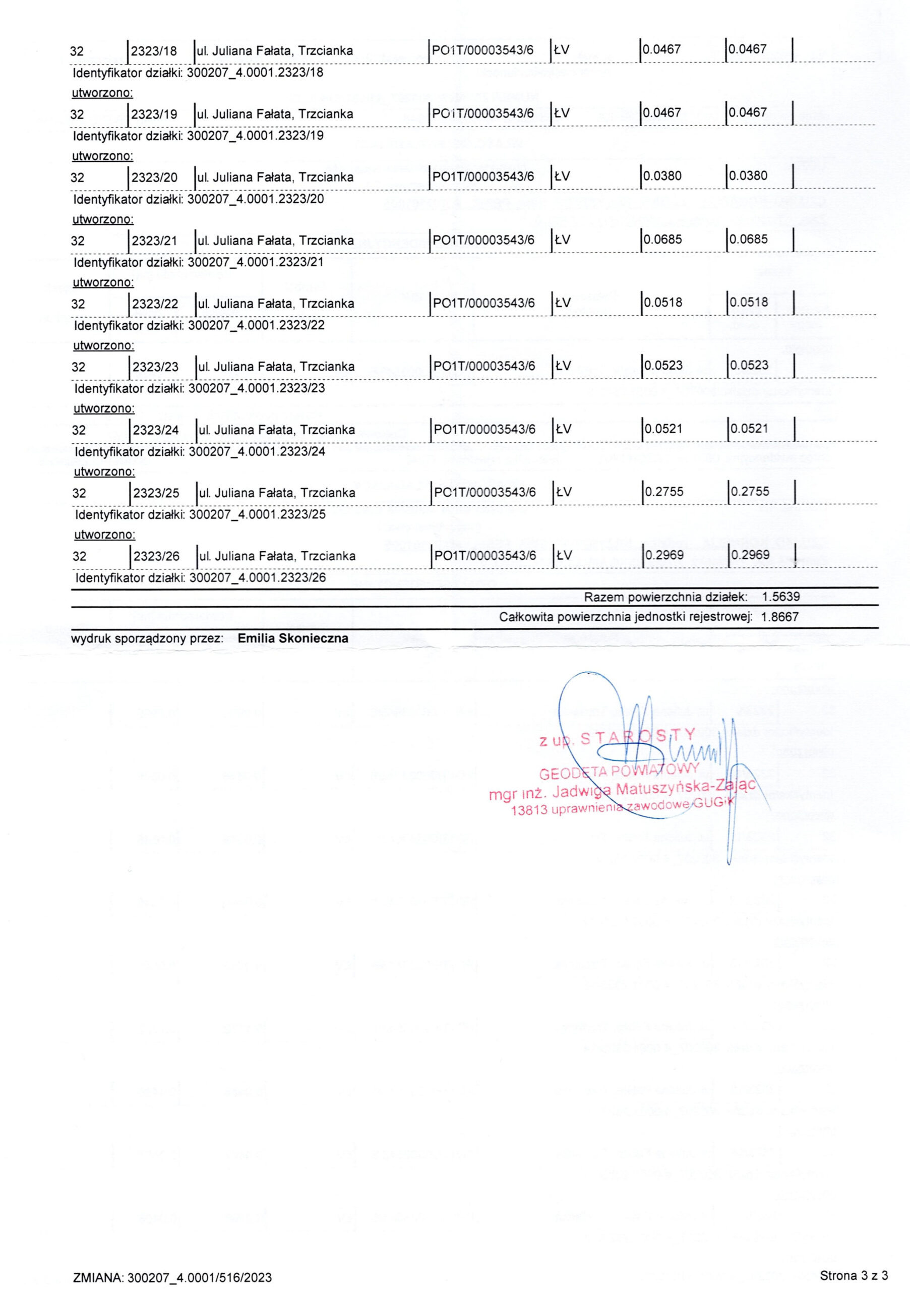 Wyrys z mapy ewidencyjnej