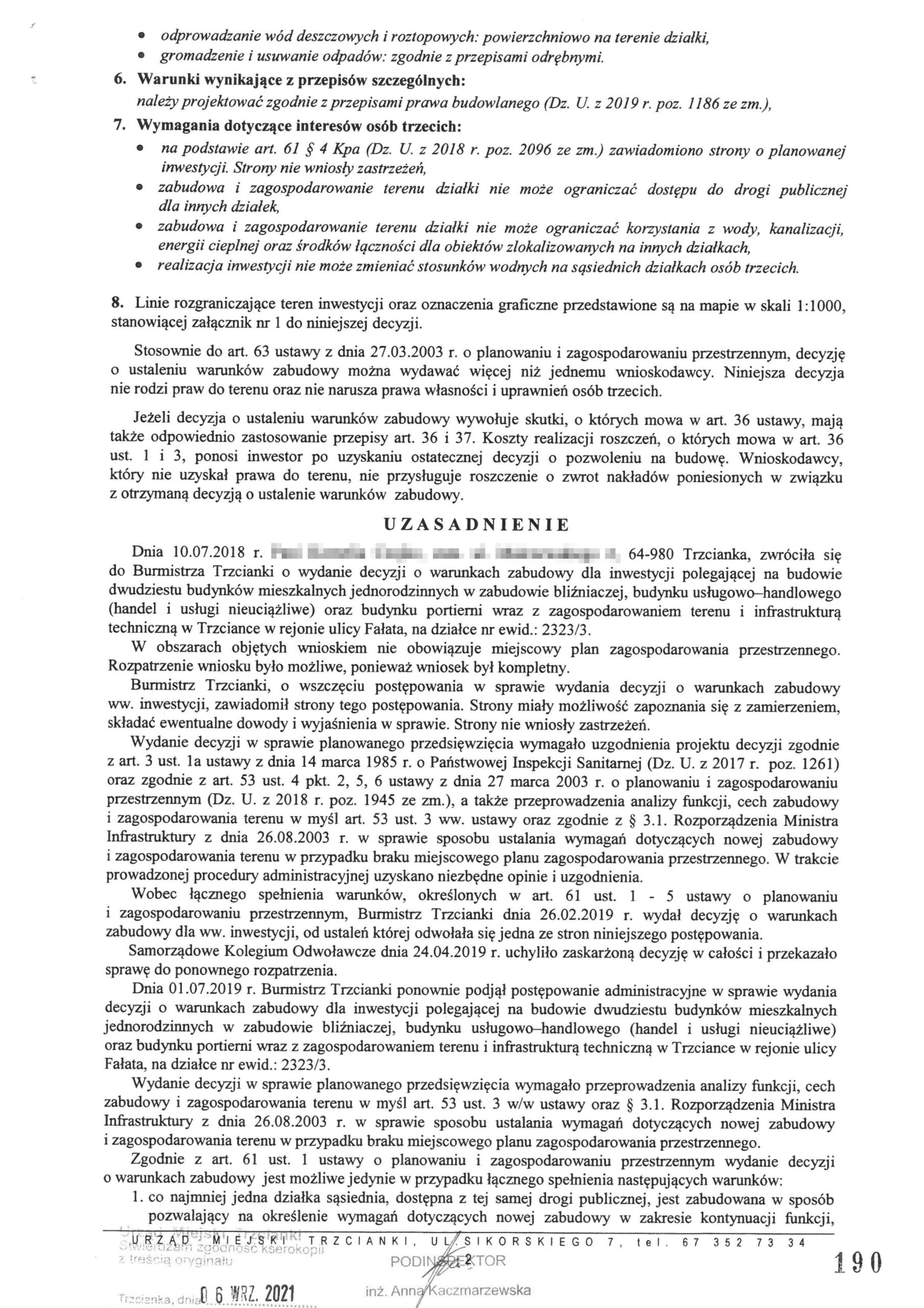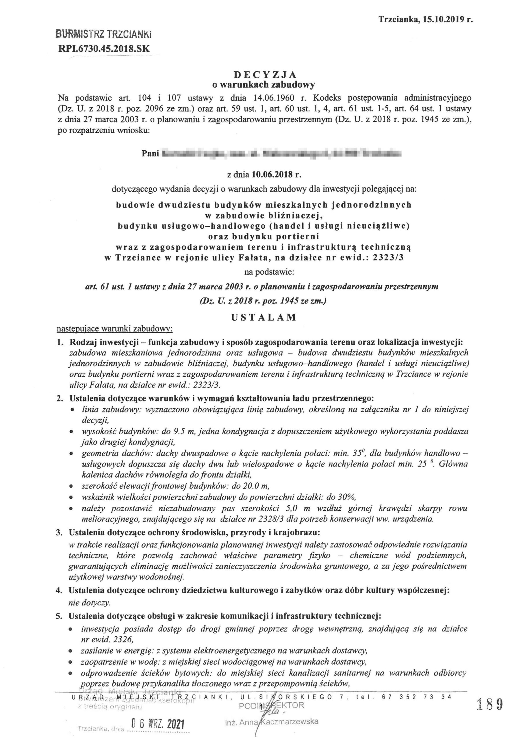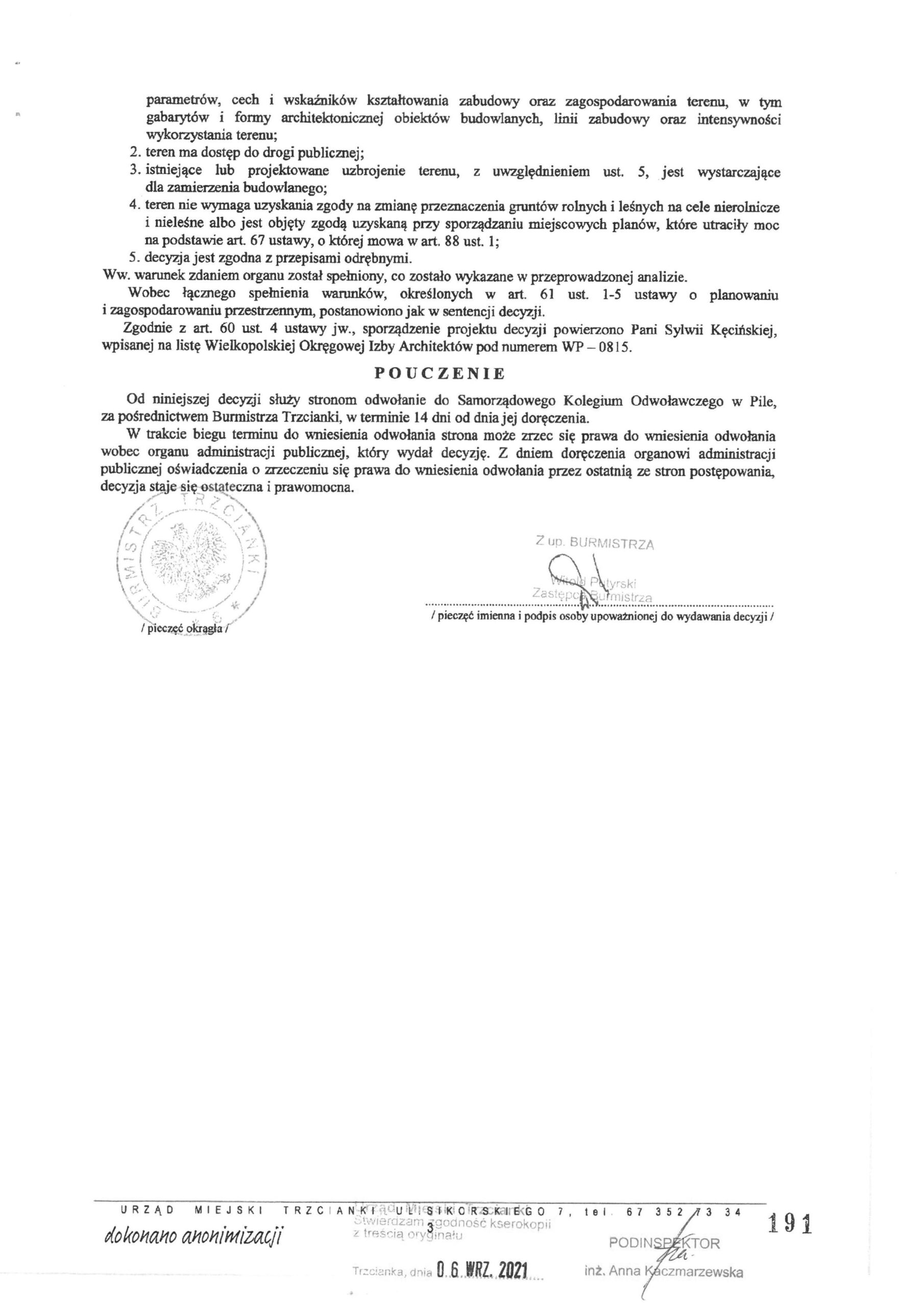 Decyzja Burmistrza Trzcianki z dnia 15.10.2019r